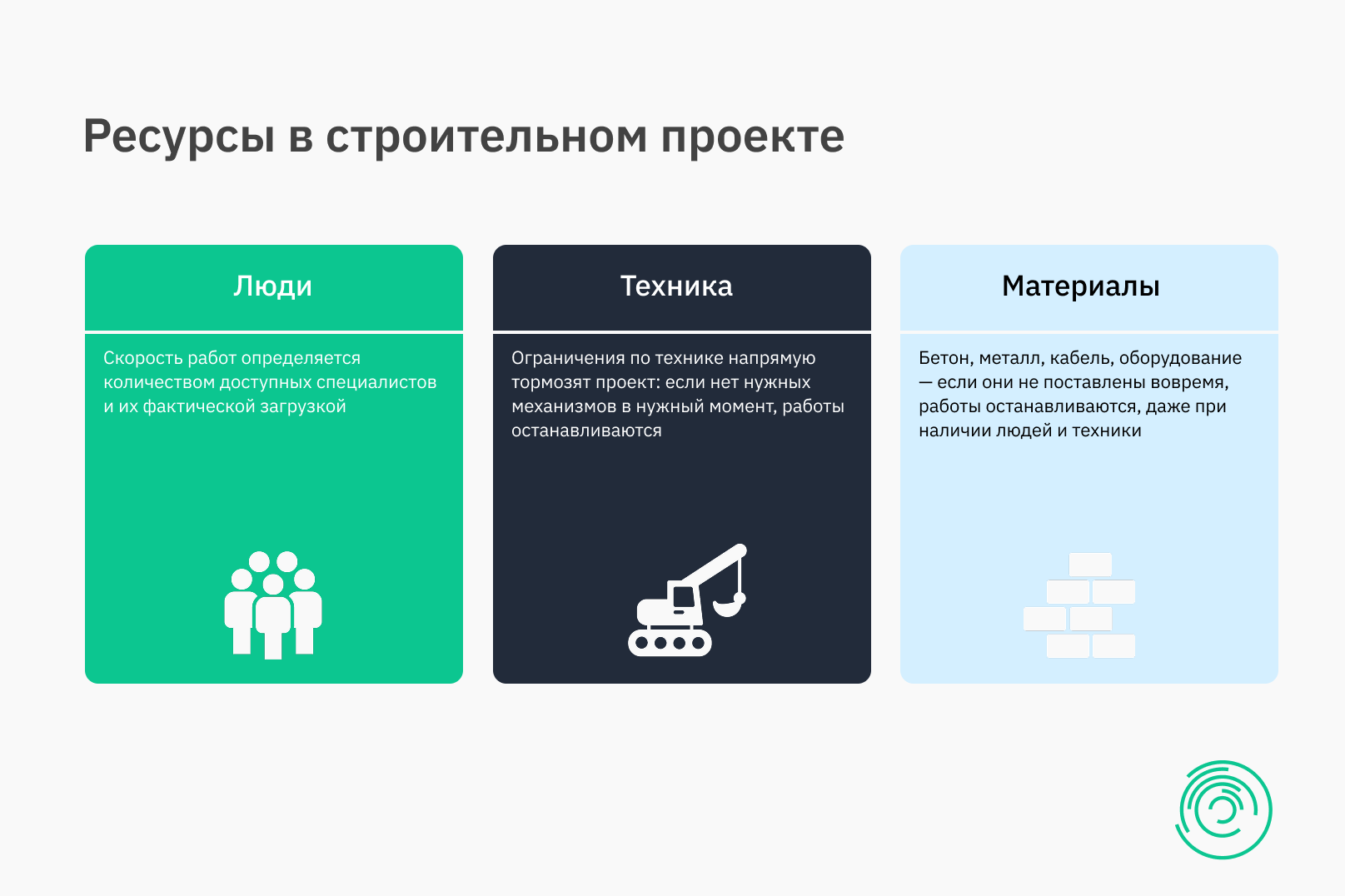 В строительстве принято говорить о трех базовых группах ресурсов, но важно не просто их перечислить, а понимать, как они влияют друг на друга.